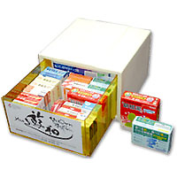 配置薬は家庭の救急箱と違い、配置販売業者があらかじめ色々な一般用医薬品を入れて家庭などに預ける特別な薬箱です。