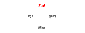 お客様が健康でお客様の夢の実現のため、私たちにできること、それはお客様の立場にたって、健康を見つめサポートしてあげることのできる4つ行動指針「希望」「努力」「研究」「創意」に集約されます。その中心となる「希望」を常に意識できるよな願いを込めております。